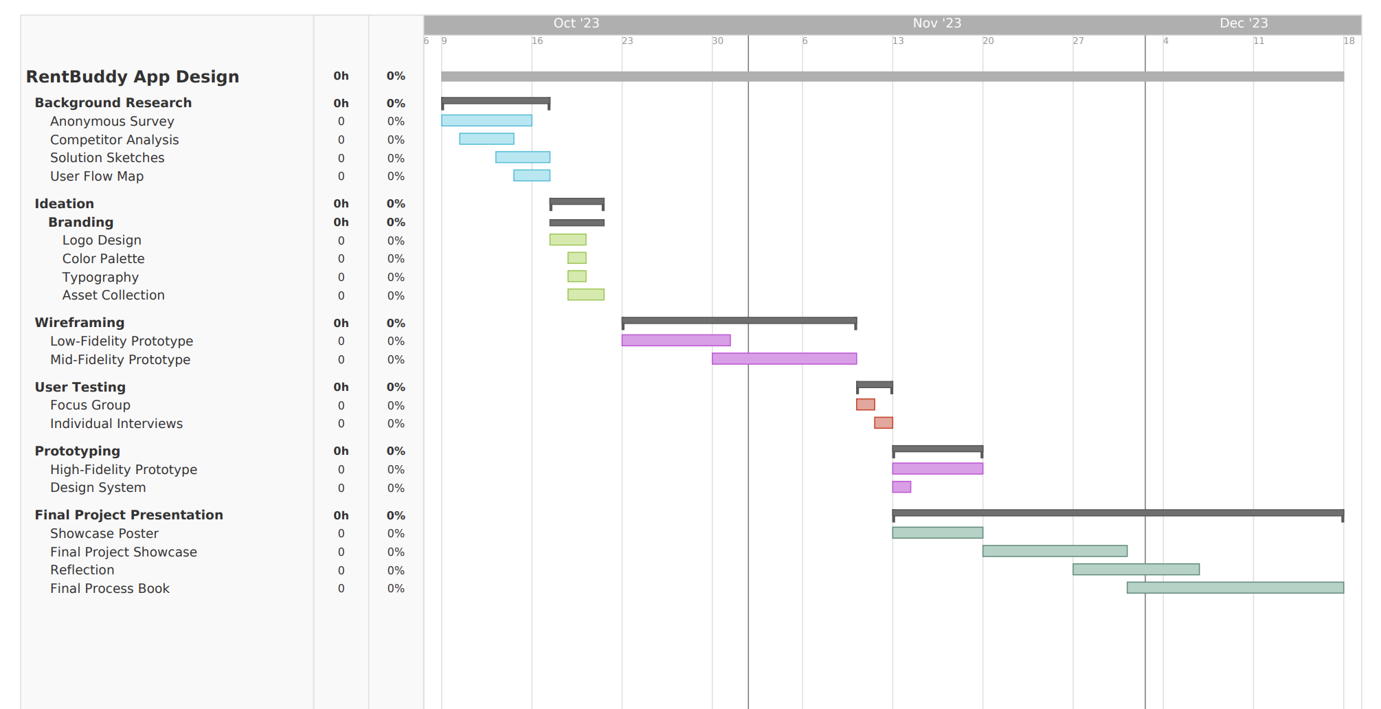 I was given 8 weeks to conduct research and complete my Senior Project. Due to such short time constraints, it was important for me to work efficiently and diligently. To ensure an appropriate amount of time was dedicated towards research and ideation, I created a timeline including temporary deadlines and progress markers.